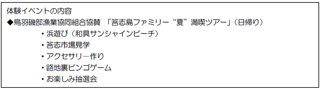 2025年8月24日、三重県鳥羽市に位置する美しい離島、答志島で「答志島ファミリー“夏”満喫ツアー」が実施されます。この特別なツアーは、親子で楽しむことを目的に、「遊び」「学び」「観光」が融合したプログラムが用意されています。白い砂浜と穏やかな海が広がる答志島で、家族皆で素晴らしい思い出を作るチャンスです。