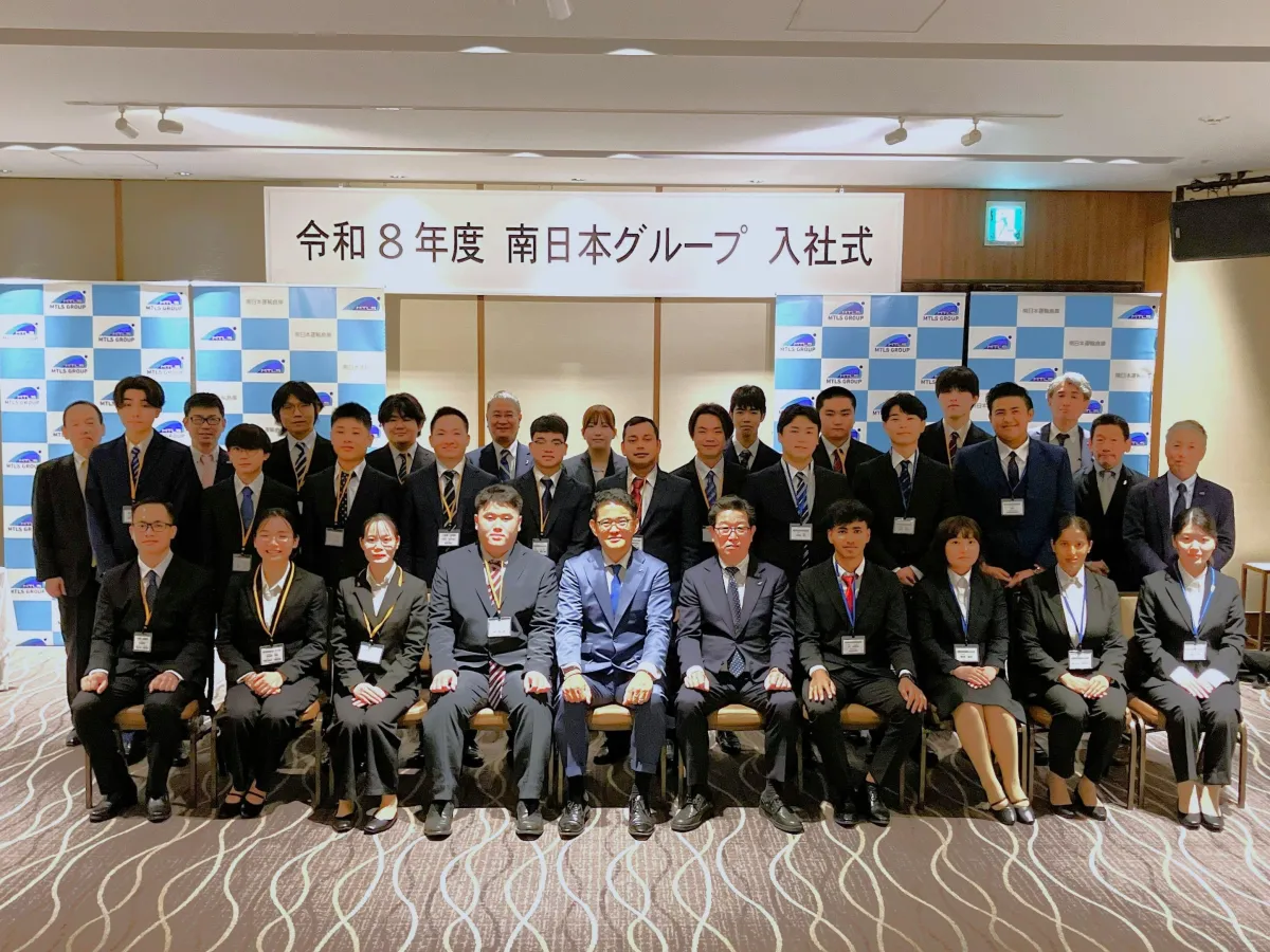 令和8年度の南日本グループ入社式が4月1日に盛大に開催され、合計24名の新入社員がこの日、社会人生活の第一歩を踏み出しました。参加した企業は、南日本運輸倉庫株式会社(本社:東京都中野区)と昭和冷凍株式会社(本社:静岡県静岡市)です。