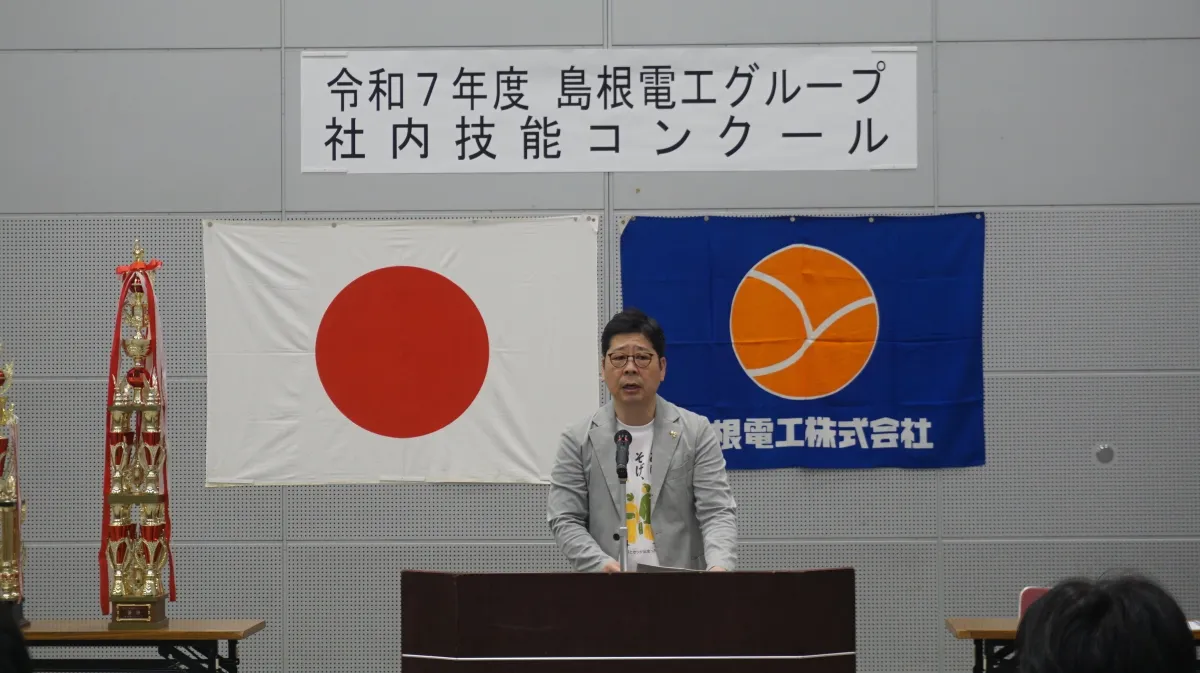 代表取締役社長の野津廣一は開会の挨拶の中で、島根電工の技術力の重要性を強調しました。技能コンクールは単なる競技ではなく、技術者としての誇りとプロ意識を育む場でもあります。