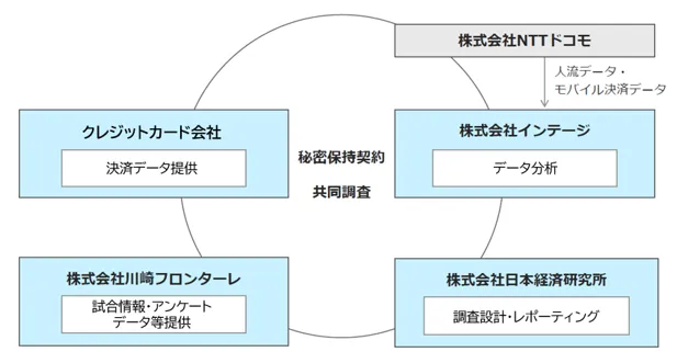 この実証実験は、株式会社NTTドコモと株式会社インテージ、そして日本経済研究所と川崎フロンターレの協力のもとに行われました。具体的には、2024年3月から10月にかけて、川崎市に位置する「Uvanceとどろきスタジアム by Fujitsu」近辺で、来場者の行動と地域消費の変化を分析しました。これにはドコモが持つ位置情報や決済情報、ユーザー属性データなどが用いられました。