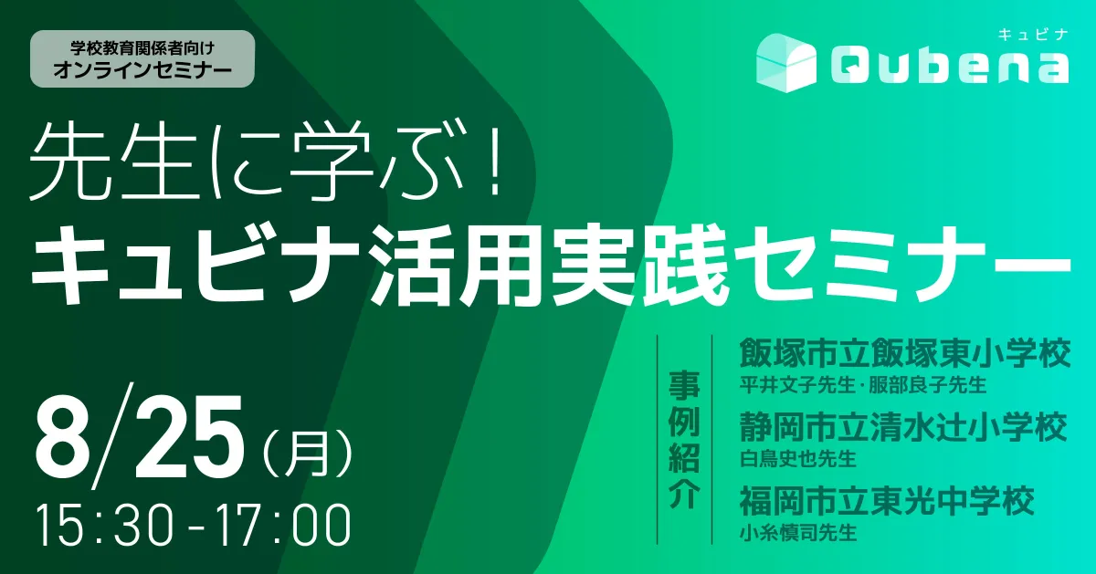 株式会社COMPASSは、全国の自治体および教育関係者を対象に、オンラインセミナー「先生に学ぶ!キュビナ活用実践セミナー」を2025年8月25日に開催します。このイベントでは、特に小学校・中学校の現場で「キュビナ」を活用している先生方の実践発表が行われます。