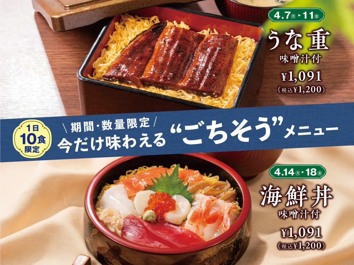 - - うな重:販売期間は4月7日から11日まで。特製のタレで仕上げられたうなぎが香ばしさを引き立て、一口食べると幸せが広がります。