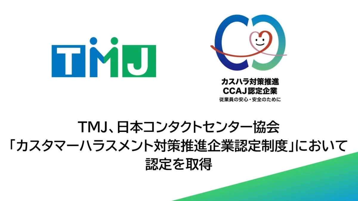 TMJがカスタマーハラスメント対策で初の認定を獲得