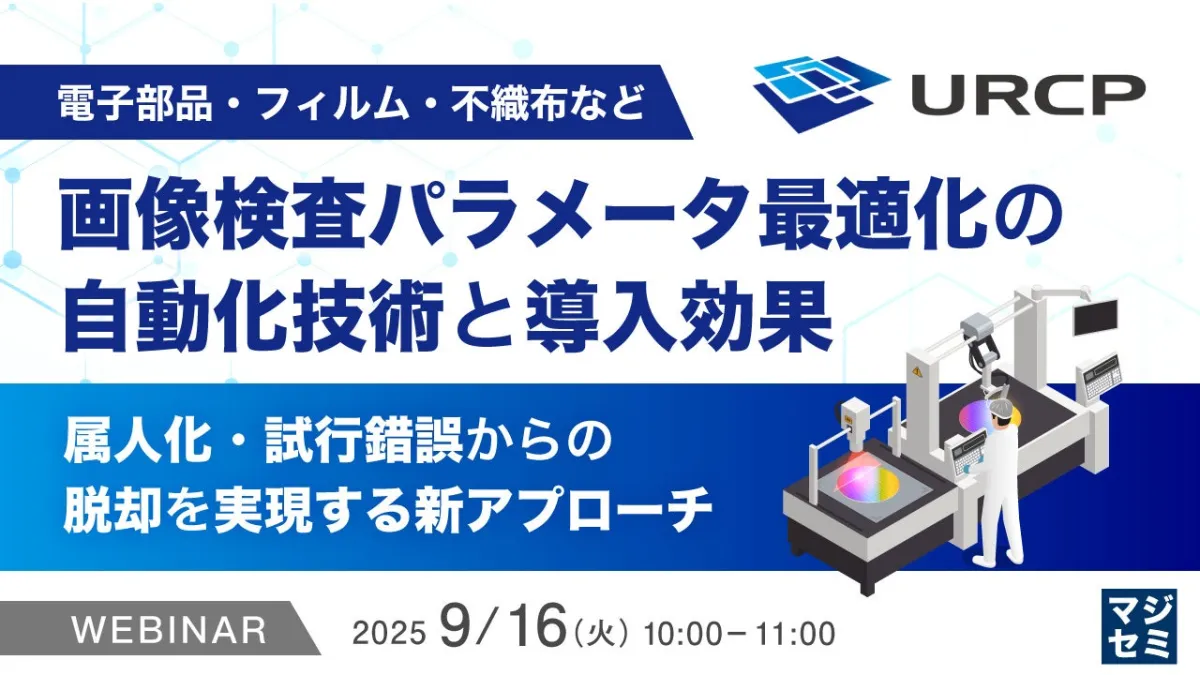 本ウェビナーでは、画像検査ソリューションである『URCP』を活用し、検査装置のパラメータ設定を自動で最適化する方法を解説します。この『URCP』は、検査ソフトウェア、光学機器、条件選定、さらには装置の設計、組立、納品までを一括して提供し、電子部品やフィルム、不織布など多様な製品に対応しています。また、微細な欠陥や異物、内部欠陥まで高精度かつ再現性高く検出することを実現しています。