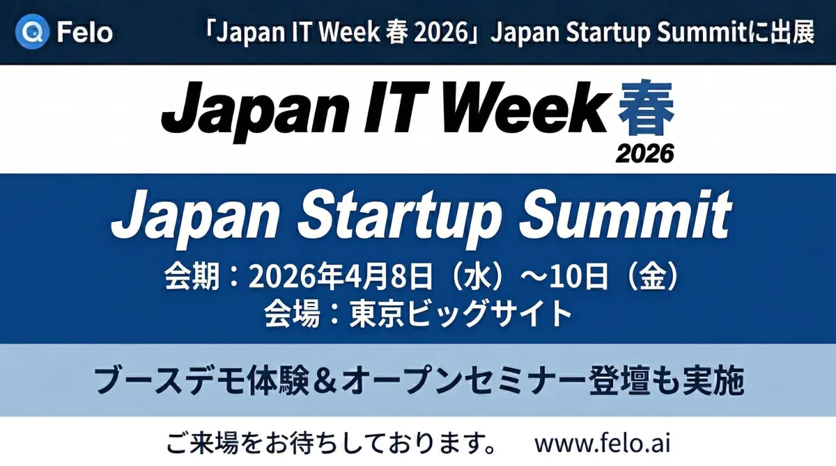 日本のIT業界における新たなスタートアップ、Felo株式会社は、今春の「Japan IT Week 春 2026」に出展いたします。2026年4月8日から10日まで、東京ビッグサイトで開催されるこのイベントの中で、Feloがどのように業務の非効率性を打破し、業務に革命をもたらすのかを体験できるチャンスです。