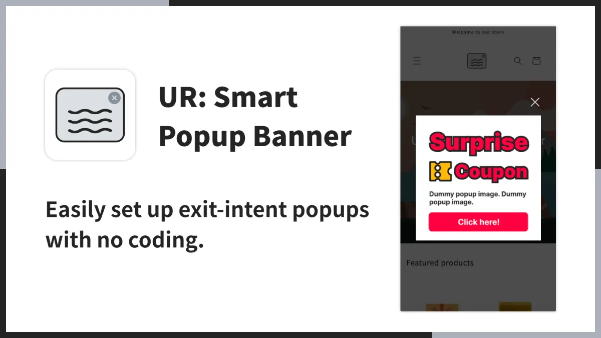 最近のECサイトでは、訪問者が商品をカートに入れた後、最終的に購入せずにサイトを離れてしまうケースが多く見られます。この「UR: Smart Popup Banner App」では、離脱防止のためのポップアップバナーをノーコードで簡単に実装可能です。設定が簡単なので、手間をかけることなく、すぐに効果を実感できるでしょう。