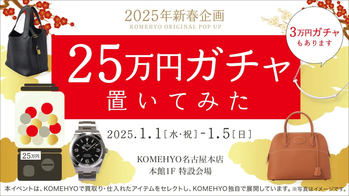 毎年恒例のお正月の楽しみが、名古屋にやってきます。株式会社コメ兵は、2025年の新春を祝う特別企画として、1月1日から5日までの間、ハズレなしの「25万円ガチャ置いてみた」を実施します。参加者には、最高100万円相当のブランドアイテムが当たるチャンスが舞い込みます。