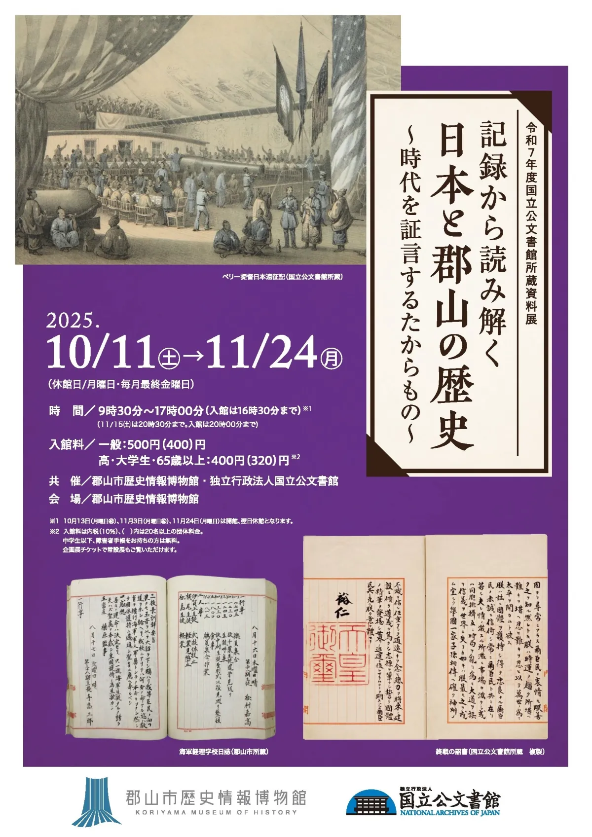 2025年10月11日(土)、郡山市歴史情報博物館にて第3回目となる企画展「記録から読み解く日本と郡山の歴史~時代を証言するたからもの~」が開幕します。この企画展では、国立公文書館が所蔵する貴重な資料を中心に、明治時代以降の日本と郡山の歴史をさまざまな角度から掘り下げます。