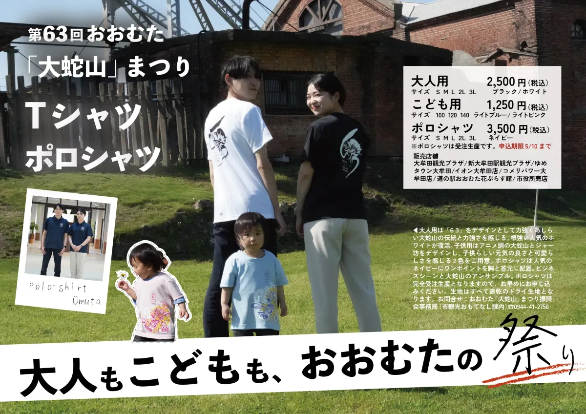 毎年大好評の「大蛇山まつり」ですが、今年は特に特別なTシャツを身に着けて、さらに祭りを楽しむことができます。大牟田の祭りが送る力強いエネルギーを感じながら、街全体で盛り上がりましょう!