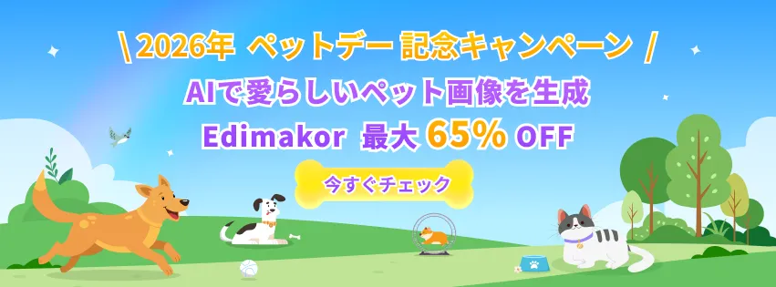 2026年4月8日から24日まで、AI動画編集ソフト「HitPaw Edimakor」がナショナルペットデーにちなんだ特別イベント「Edimakor Pet Day 2026」を開催します。この期間中、動画編集や画面録画ソフトをお得な価格で提供し、ペットとの大切な思い出をより手軽に残すチャンスを提供します。