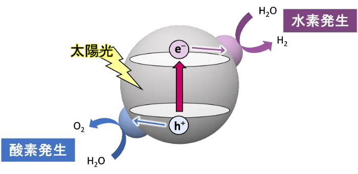 光触媒とは、光を照射することでその特性を変えずに触媒作用を示す材料ですが、OWSの効率を高めるには、光触媒しっかりとした水素発生と酸素発生の反応を促進する助触媒が不可欠です。これまでは金属や金属酸化物に依存する形態が主流でしたが、本研究により新たなオールインワン助触媒の実現に至りました。