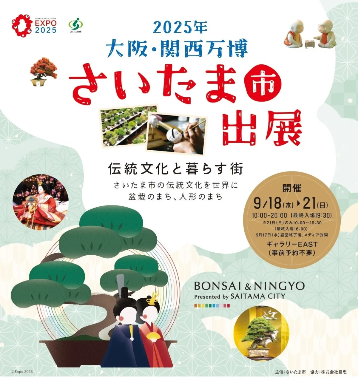 株式会社島忠が、2025年に大阪で開催される関西万博にて、さいたま市の展示協力を発表しました。開催日程は9月17日から9月21日で、会場となる「ギャラリーEAST」では、さいたま市の盆栽や人形といった伝統文化を体験できるスペースが用意されます。