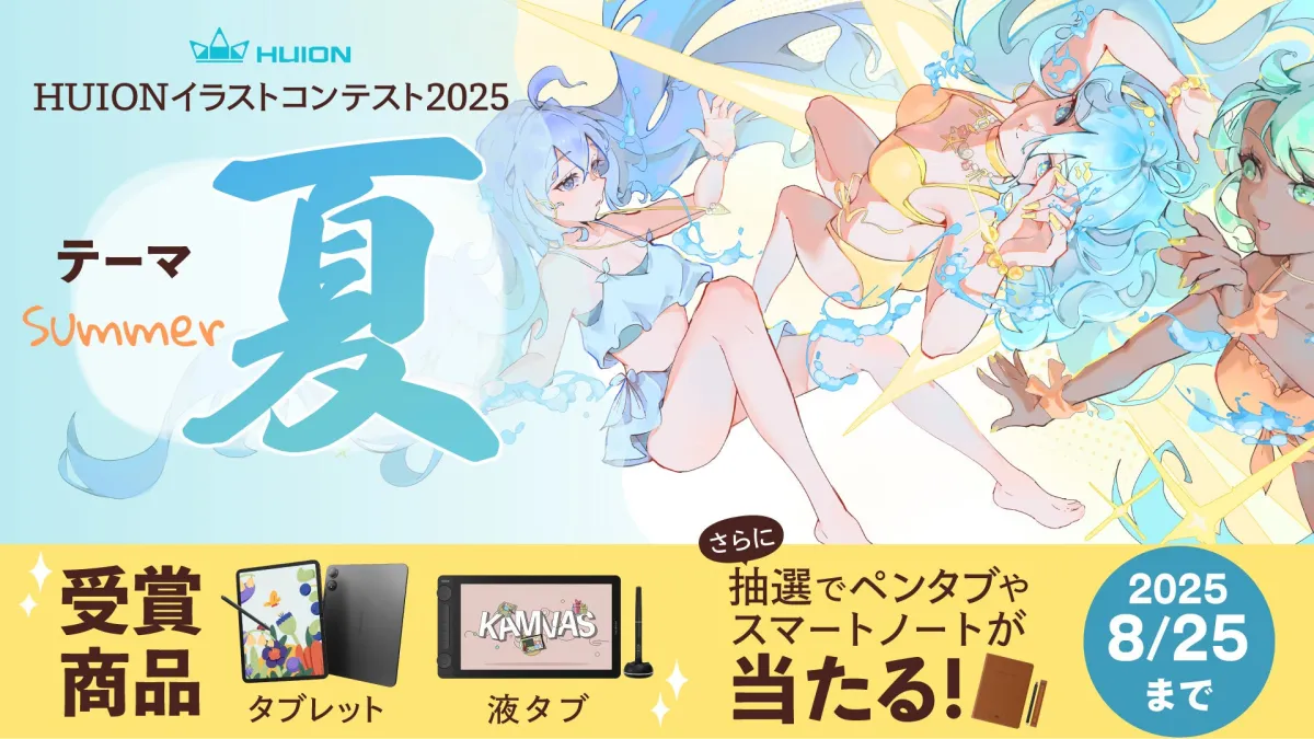 2025年6月25日から8月25日まで、HUIONとARTstreetが共同で主催する「HUIONイラストコンテスト2025」が開催されます。このイベントは、皆さんの心に浮かぶ「夏のひととき」をテーマに、幅広い創造的表現を歓迎します。応募者は、現実の風景や幻想的な世界、さらには両者が融合した独自の作品を描いて応募することができます。