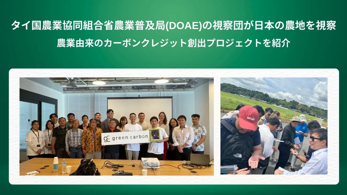 2023年8月13日と14日、Green Carbon株式会社はタイ国農業協同組合省農業普及局(DOAE)の視察団を迎え、日本の農地を巡り、カーボンクレジット創出プロジェクトの紹介を行いました。この訪問は、日本タイ大使館からの要請により実現したもので、両国間の協力の可能性を広げる重要な一歩となりました。