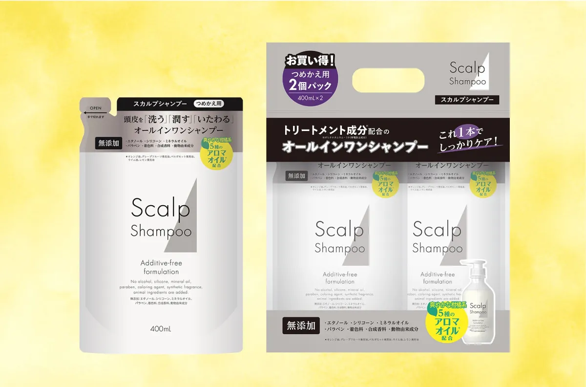 NCスカルプシャンプーは「洗う」「潤す」「いたわる」の3つの効果を持ったオールインワンシャンプーです。アミノ酸系の洗浄成分を基に、ダブルのスカルプケア成分(グリチルリチン酸2Kとメントール)及びトリートメント成分を豊富に配合。頭皮と髪に優しい使い心地で、スーッとした清涼感を与えます。また、7つの無添加にこだわっており、5種の柑橘系アロマが浴室を爽やかに演出します。