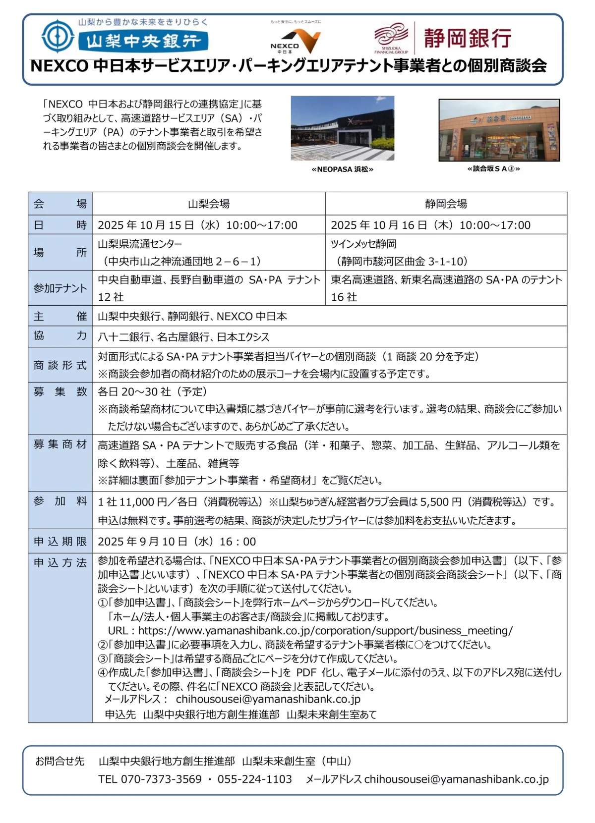 株式会社山梨中央銀行と株式会社静岡銀行、さらに中日本高速道路株式会社(NEXCO中日本)の3社による連携が新たなビジネスの場を提供します。2023年、これらの銀行は共同で「個別商談会」を開催することを決定しました。この商談会は、特に山梨県と静岡県の地元産品のPRを促進する目的があります。