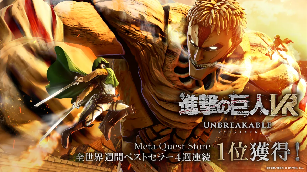 2024年に入り、VRゲーム『進撃の巨人VR: Unbreakable』が全世界のMeta Quest Storeで週間ベストセラーランキングで4週連続1位を獲得し、注目を集めています。このゲームは、人気漫画『進撃の巨人』を基にしたVR専用の立体機動ハンティングアクションゲームで、プレイヤーは調査兵団の一員となり巨人との戦いに挑むことができます。