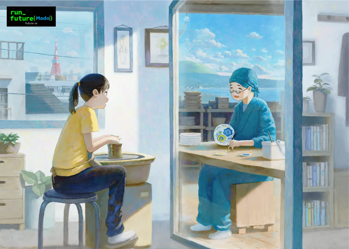 「run_future()」は、未来を可視化するための構文として設計され、先端技術を通じて描かれるイメージを創造的に表現します。このプロジェクトでは、さまざまな企業や研究機関のトップランナーが、それぞれのビジョンをアートとして具現化することを目指しています。今回の「run_future(Mado)」は、MUSVI株式会社のビジョンをテーマにし、テレプレゼンスシステム「窓」を使った遠隔コミュニケーションの新しい形を描き出しています。