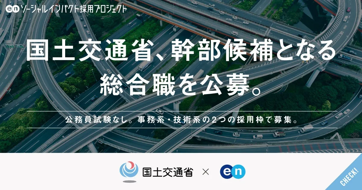 国土交通省は、2026年4月16日からエン株式会社との協働により「ソーシャルインパクト採用プロジェクト」を立ち上げました。このプロジェクトでは幅広い業界からの人材を対象に、幹部候補となる「総合職(事務系/技術系)」を公募します。