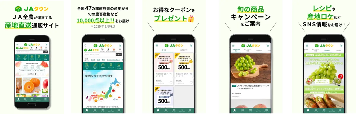 JAタウンのビジョンは「おいしい日本と暮らそう」というテーマのもと、各地域の美味しい食材を常に届けること。皆さんもアプリを利用して新鮮な産地直送の商品を楽しんでみてください。食生活がさらに充実すること間違いなしです。