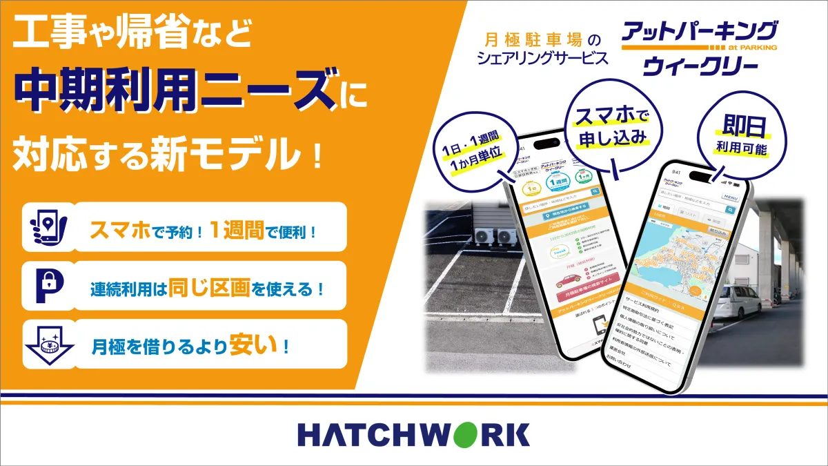 これまでの月極駐車場契約は、長期利用には特化しているものの、短期的な利用ニーズには応えられないという課題がありました。特にコインパーキングが少ないエリアでは、工事や出張、帰省といった用途で駐車場を探している法人や個人の声が多く寄せられていました。ハッチ・ワークはこのようなニーズに応えるべく、特定の期間にわたって専用で使用できる新しい選択肢を提供することにしたのです。