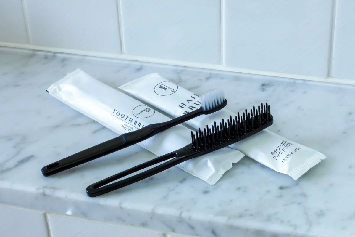 対象アイテム: 宿泊施設で使用された歯ブラシ、ヘアブラシ。