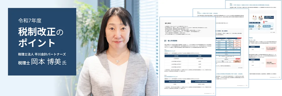 三菱地所リアルエステートサービス株式会社(以下、三菱地所)は、令和7年度の税制改正に関する詳細な資料を発行しました。税理士法人平川会計パートナーズの岡本博美氏がこの改正点を解説しています。この資料は無料でダウンロード可能で、最新の税制改正がどのように個人や法人に影響を及ぼすかを理解するための貴重な情報源となります。