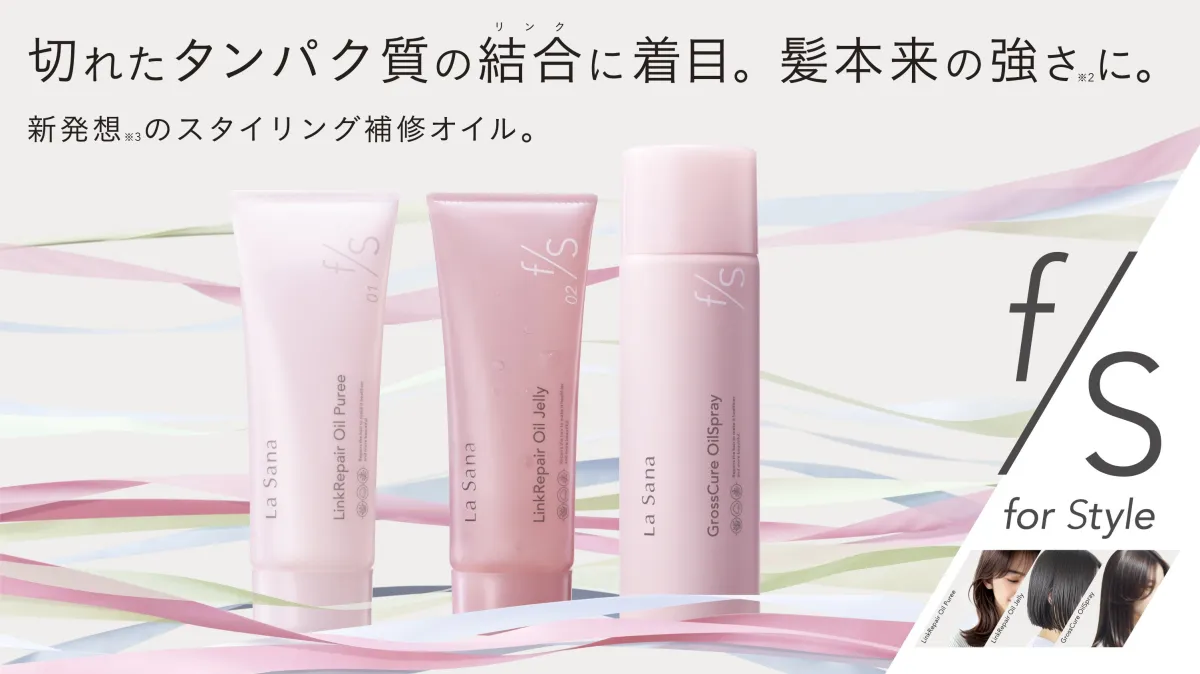 「フォースタイル」には、3つのアイテムがラインナップされています。『リンクリペアオイル ピュレ』、そして『リンクリペアオイル ジュレ』、さらには『グロスキュア オイルスプレー』の3種類です。特に注目なのは、これらが毛髪内部のタンパク質結合に着目した高補修力を有し、オシャレな髪を維持しながらもダメージをしっかりケアできる点です。