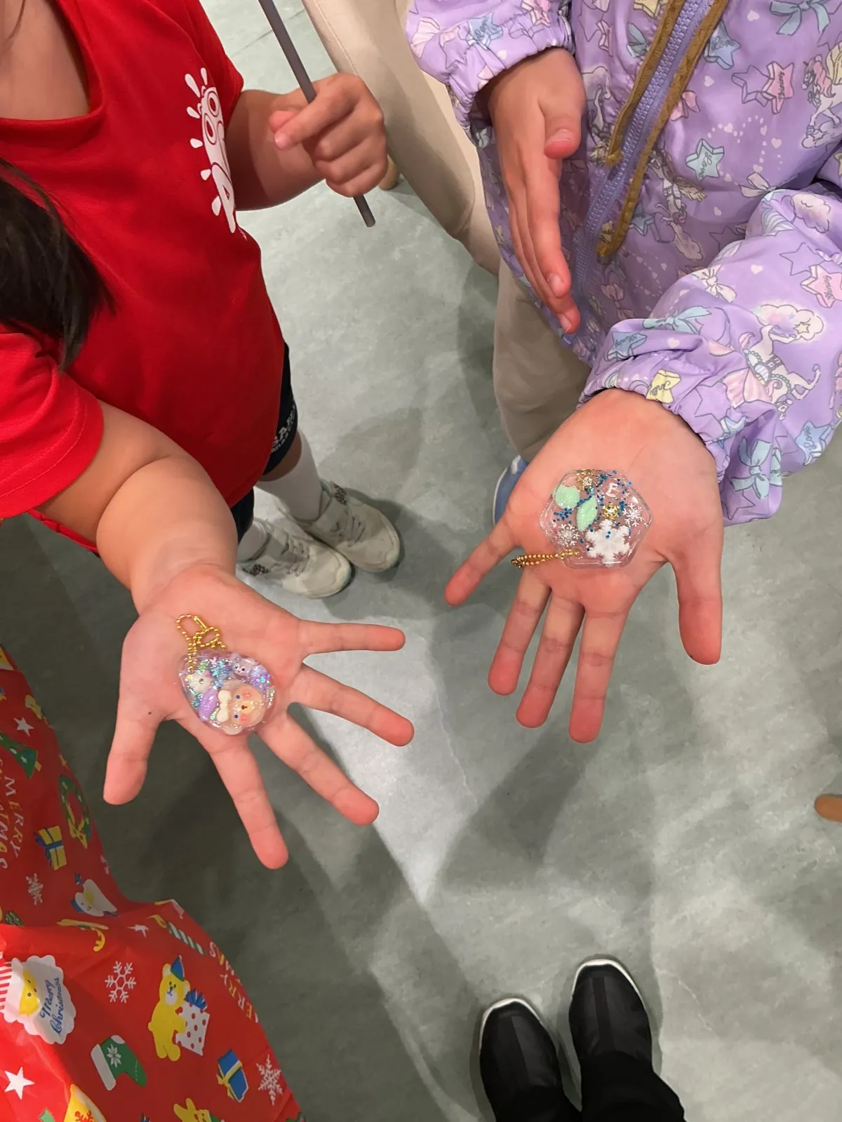 みどり歯科クリスマスイベントが開催されました!土曜日から始まり、12月25日までの平日のみ、楽しいプログラムが用意されています。参加者は、レジンを使ってオリジナルのキーホルダー作りに挑戦できます。透明なレジンに好きなパーツを閉じ込めて、自分だけの特別なアイテムを完成させましょう。選べるパーツには、キラキラした雪の結晶やかわいいキャラクターがあり、完成したキーホルダーはクリスマスツリーのオーナメントとしても活用できます。