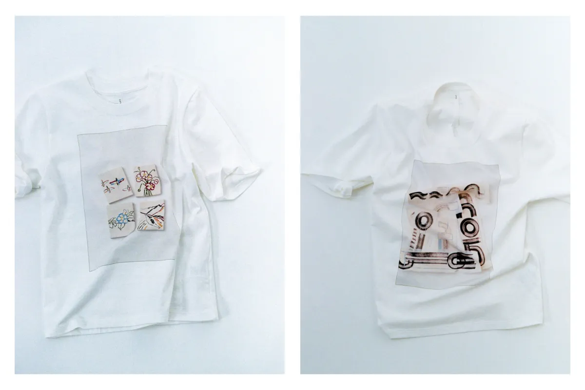 Tシャツのデザインには、作品と同じ色の手刺繍が一部に施され、視覚だけでなく触覚でも楽しめるアプローチをしています。このタッチが加わることで、より深い感覚的な体験が提供されるのです。「音、波、光」は白と黒のボディで、シンプルかつ上品な魅力を漂わせています。