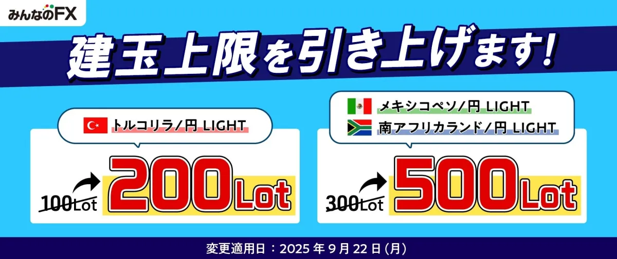 トレイダーズ証券株式会社は、2025年9月22日より、提供する外国為替取引サービス「みんなのFX」において、人気の高金利通貨ペアの建玉上限を引き上げることを発表しました。この変更により、多くの顧客がより自由に取引を行えるようになります。