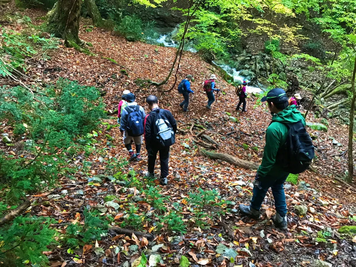 コースの距離は約15km、標高差は600mです。また、途中には川を渡る場所もあり、スリリングな体験が待っています。この道を歩くには、しっかりとした体力が求められるため、健康に自信のある中学生以上の方が対象です。