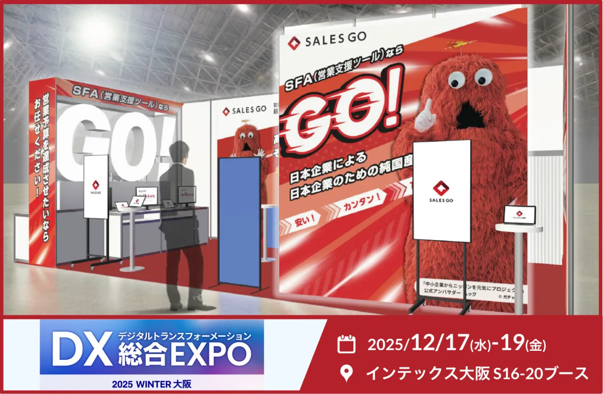 2025年12月17日から19日にインテックス大阪で開催される「DX総合EXPO」に、純国産SFAを手がけるSALES GO株式会社が出展します。この展示会は業務の効率化や働き方改革を実現するためのDXソリューションを紹介する、日本最大級の展示会です。