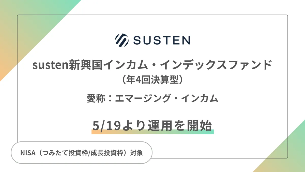 株式会社sustenキャピタル・マネジメントが提供する新興国向けのインデックスファンド「エマージング・インカム」が5月19日に運用を開始しました。このファンドは新興国株式と米ドル建て新興国債券を対象にしており、成長と收入を同時に追求する新しい投資手法を提供しています。
