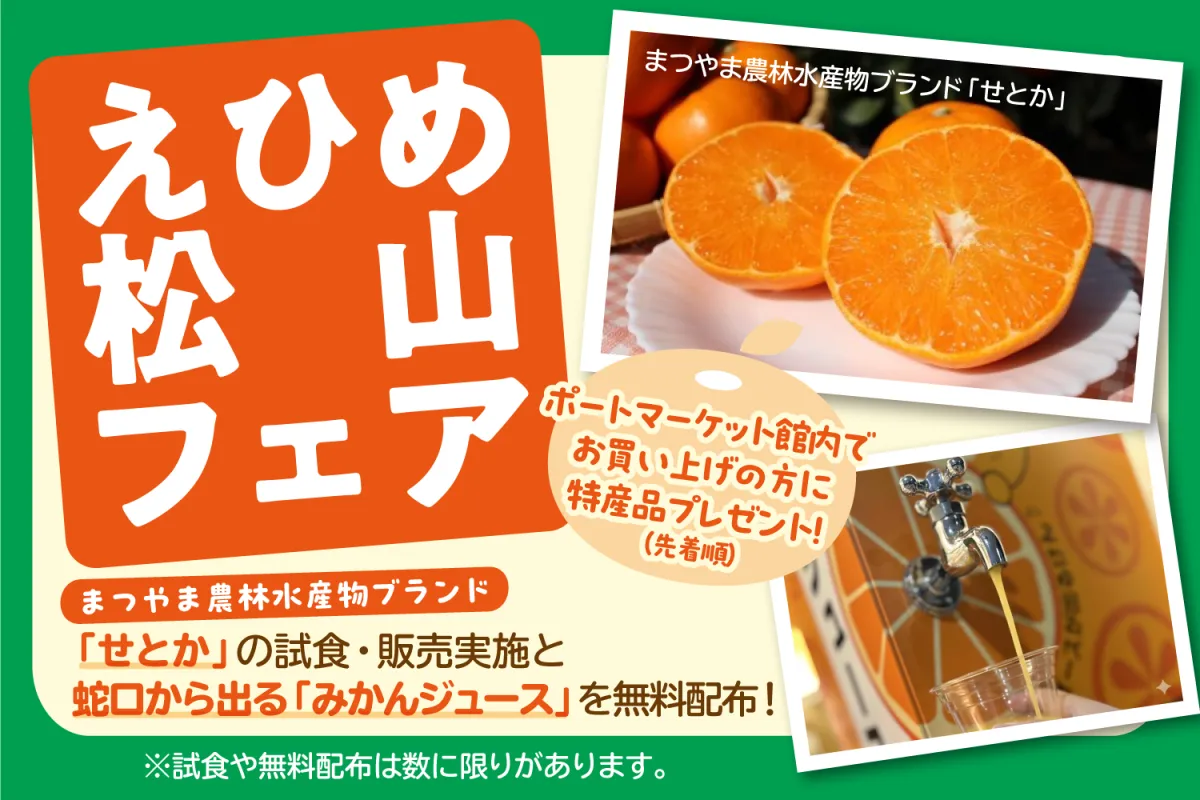 さらに、特典として「せとか」を購入すると、ホワイトみかんチョコレートがプレゼントされるほか、ポートマーケット内で税込1,000円以上の購入をした方には道後温泉の入浴剤が提供されます。券は先着順で、数量も限られています。