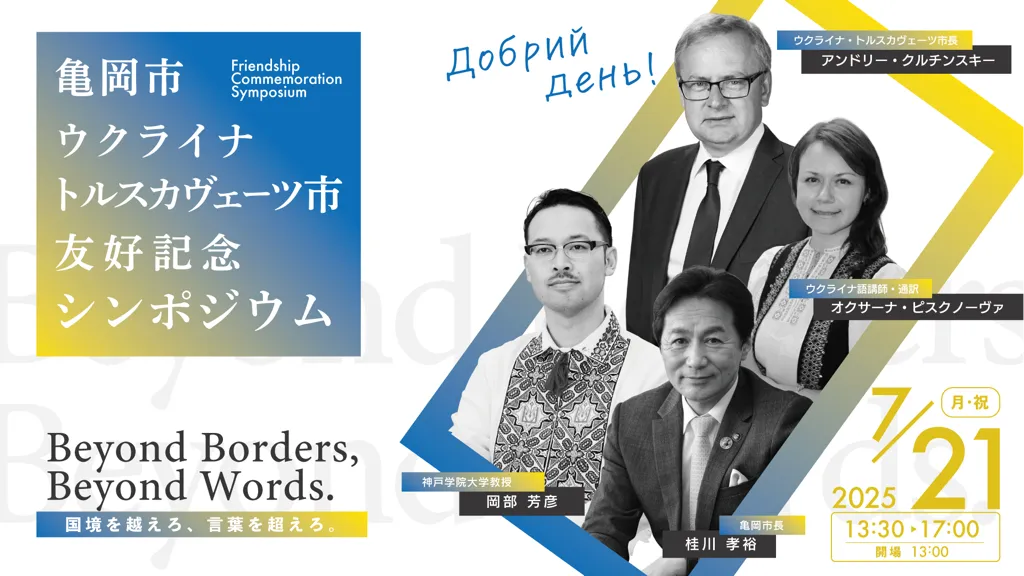 シンポジウムでは、亀岡市長とトルスカヴェーツ市長が正式な友情の証を結び、今後の交流に向けた意見交換も行われる予定です。参加者には、地元の文化やウクライナの魅力を知る貴重な機会となることでしょう。