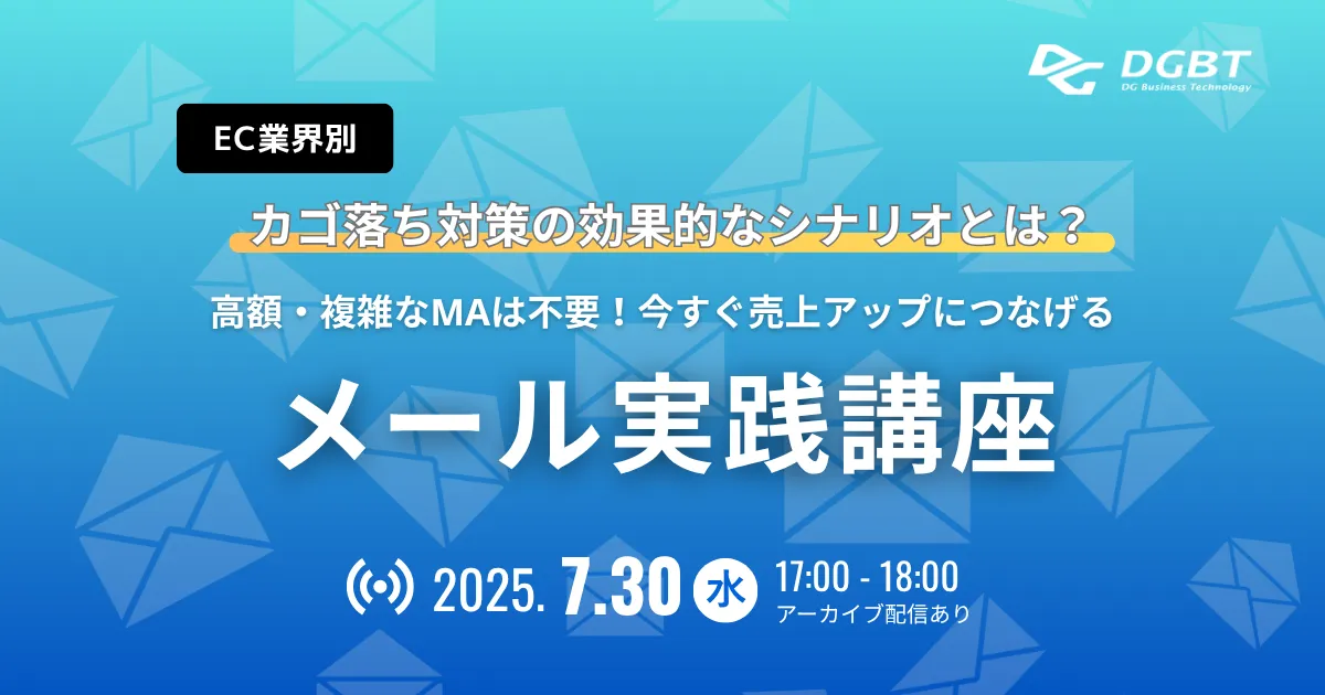 オンラインショッピングの普及と共に、ECサイトを運営する企業にとって重要なのが「カゴ落ち対策」です。ショッピングカートに商品を入れた途端、購入を放棄するユーザーの存在は、ECビジネスの売上に影響を与えます。この悩ましい状況に対し、デジタルビジネス支援を行う株式会社DGビジネステクノロジー(DGBT)は、7月30日に無料オンラインセミナーを開催します。