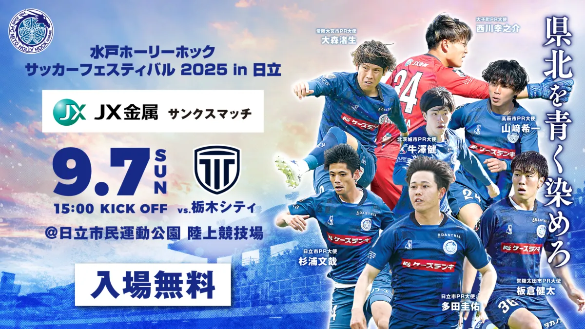 2025年9月7日(日曜日)、日立市民運動公園 陸上競技場にて「水戸ホーリーホック サッカーフェスティバル in 日立 presented by JX金属」が開催されます。このイベントは、日立市を拠点に活動しているサッカークラブ「水戸ホーリーホック」が主催し、信頼のおける企業、JX金属の協賛によって実現するものです。