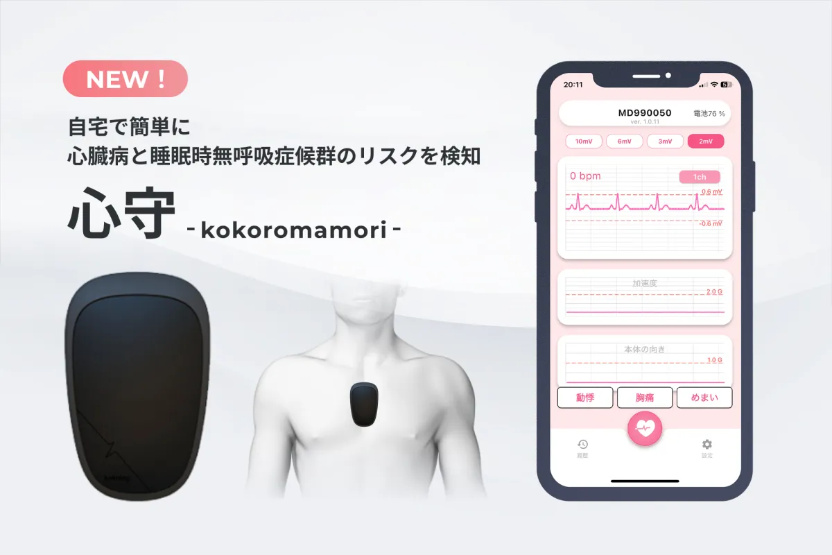 これらの社会的背景を受け、展示会では「自宅で心臓リスクや睡眠時無呼吸症候群を見える化する新しい予防医療」にも注目が集まっています。たとえば、株式会社ココロミルが開発した新しいヘルスケアデバイスは、自宅で簡単に心臓や睡眠状態を把握できる機器です。このデバイスは小型の心電計を使用し、アプリで管理しやすくなっています。これによって、家族や地域が連携し、安心して健康を見守る新しい形の管理が可能となります。