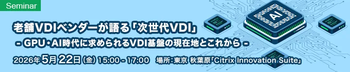 アセンテック株式会社が主催し、NVIDIA社およびCXJ社と共催する「次世代VDI」リアルセミナーが、2026年5月22日(金)に東京都千代田区で開催されます。このセミナーは、GPUとAIの時代におけるVDI基盤の変化と今後の展望をテーマにしており、参加者には業界の専門家からの最新情報が提供されます。 セミナーでは、長年にわたりVDIの分野で培われた経験をもつベンダーが「次世代VDI」の動向を詳しく解説します。具体的には、XenServerを含む仮想環境の最新のトレンドや、GPUを活用したVDIおよびAI基盤の考え方がテーマになります。従来のVDIとの違いや、その具体的な活用方法については、実際の事例やデモンストレーションも交えながら紹介されるのが特長です。 リアルセミナーならではの魅力として、参加者はその場で専門家に質問したり、自社環境に関する相談を行ったりできる機会があります。これにより、VDIの導入や刷新、その将来の基盤設計に関して、具体的なイメージを持ち帰ることができる内容になっています。 主催のアセンテック株式会社は、「簡単、迅速、安全に!」という理念のもと、仮想デスクトップ関連の製品開発や販売、コンサルティングサービスを手掛けており、サイバーセキュリティ対策やクラウドサービスにも力を入れています。また、ESGへの取り組みも強化しており、持続可能な社会への貢献を目指しています。 このセミナーは参加費が無料ですが、事前登録が必要です。興味がある方は、公式ウェブサイトからのお申し込みをお忘れなく!【開催概要】日時:2026年5月22日(金) 15:00-17:00場所:アセンテック株式会社「Citrix Innovation Suite」(東京都千代田区神田練塀町3 大東ビル9F) 受講料:無料(事前登録制)主催:アセンテック株式会社共催:エヌビディア合同会社、株式会社CXJお申し込み: