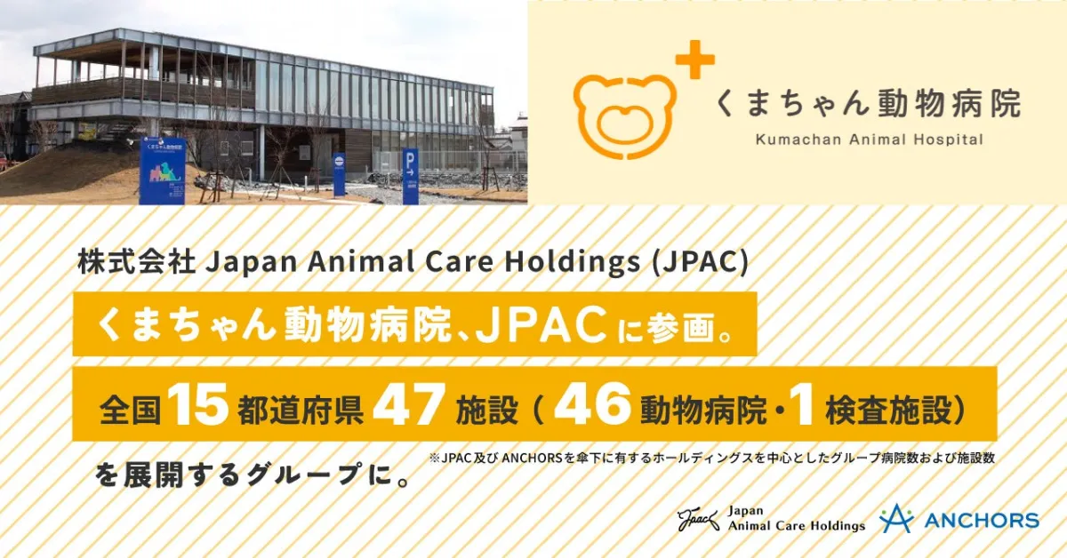 株式会社Japan Animal Care Holdings(JPAC)に参画しました。この参画により、JPACグループは全国15都道府県、47の施設を展開する大規模な動物病院グループとなります。