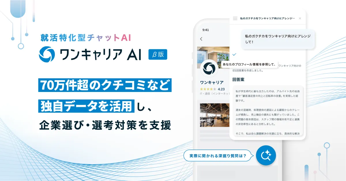 就活における情報収集や意思決定は、長い間、定型的な条件を基に行われてきましたが、株式会社ワンキャリアが新たに提供を開始した「ワンキャリアAI」β版は、この常識を覆す存在となることでしょう。この新しいチャット型AIは、70万件以上の多様なキャリアデータを駆使し、就職活動を行う学生たちに柔軟なサポートを提供します。