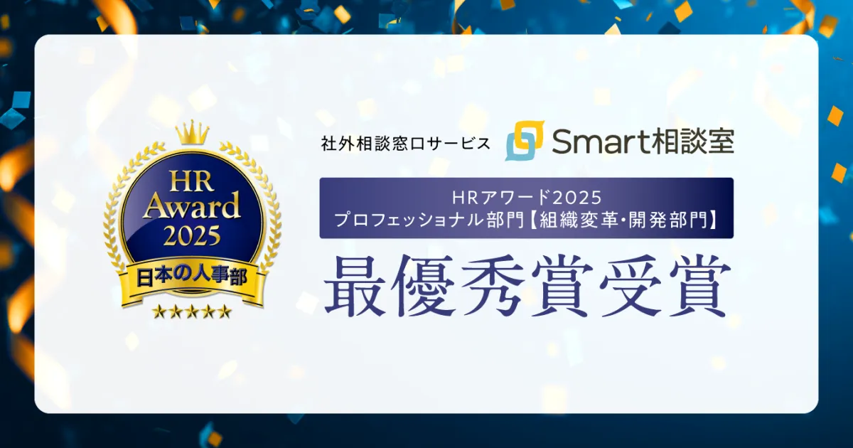 最近、株式会社Smart相談室が提供する法人向け社外相談窓口サービス「Smart相談室」が、日本の人事部が主催する「HRアワード2025」にて、最優秀賞を受賞しました。この受賞は、355件の応募の中から選ばれたもので、プロフェッショナル部門【組織変革・開発部門】での栄誉です。