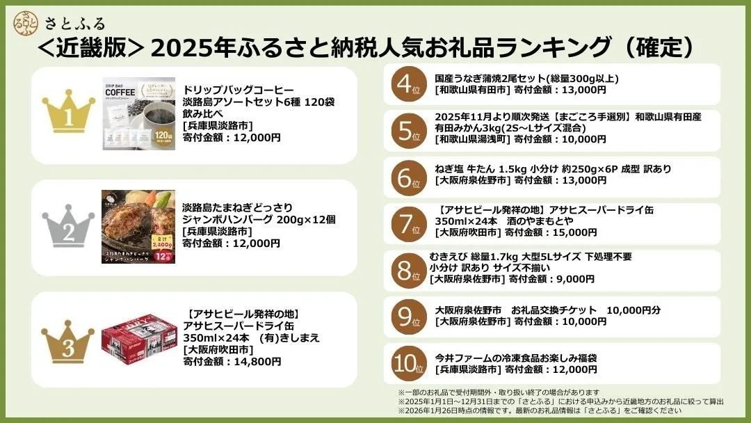 株式会社さとふるが発表した2025年近畿版ふるさと納税人気お礼品ランキングは、地域の特産品や人気商品を通じて、暮らしのニーズを反映した注目の結果となりました。これにより、地元の魅力的な商品がどのように評価されているかが明らかとなっています。