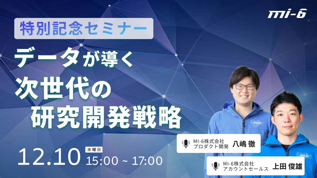MI-6株式会社(東京都中央区)は、マテリアルズ・インフォマティクス(MI)を活用した研究開発の進化を目指しています。近年の開発競争が激化する中で、MIの重要性が急速に高まっており、同社はこれに応える形でオンラインウェビナーを定期的に開催しています。その結果、累計申し込み件数が2万件を突破し、専門家の間での関心が再確認されました。この成功を記念し、2025年12月10日(水)には「データが導く次世代の研究開発戦略」と題した特別セミナーを無料で開催します。