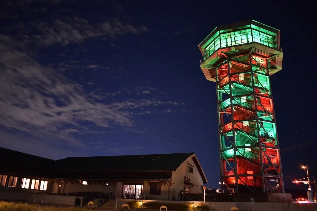 期間中、さくらであい館の展望塔は赤と緑のクリスマスカラーで美しく彩られます。このライトアップは、毎日17時から20時まで実施されており、夜空に浮かぶ幻想的な光景は、まさにサンタクロースの訪れを告げる目印ともなります。訪れた家族や友人との思い出の一コマとして、ぜひこの美しい光景をカメラに収めていただきたいです。