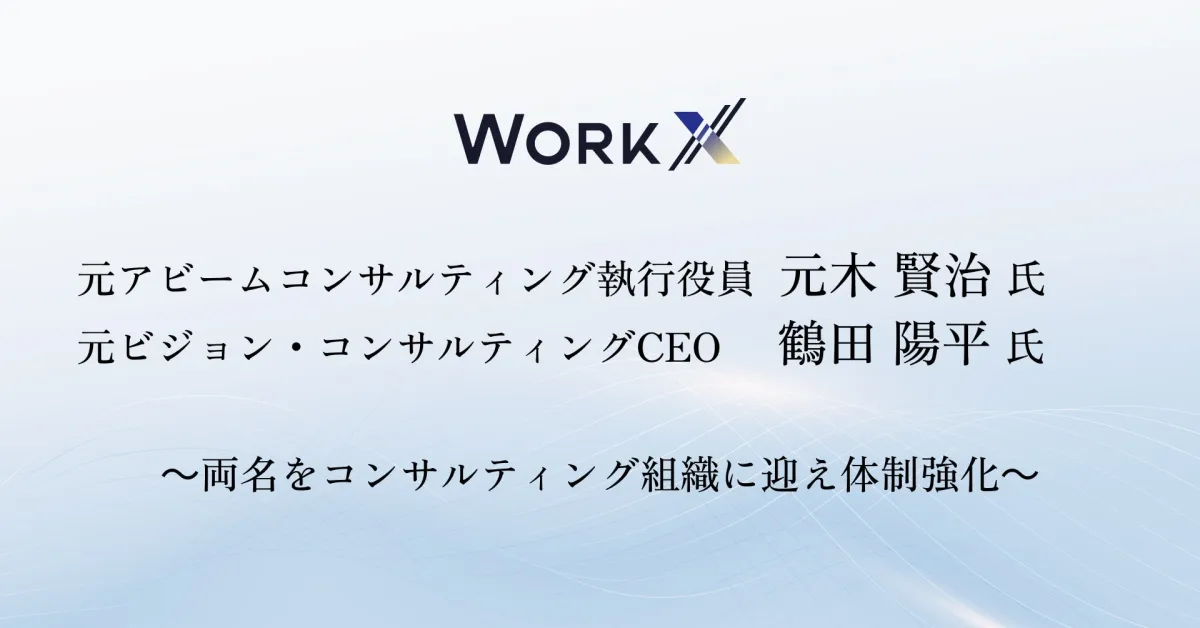株式会社WorkXが、ビジョン・コンサルティングの元木氏をプリンシパルに、また同社から鶴田氏をディレクターに迎え、コンサルティング組織「LeanX」の体制を大幅に強化することを発表しました。両氏は、各自の豊富な経験を基に、サービスの質を高める役割を担います。