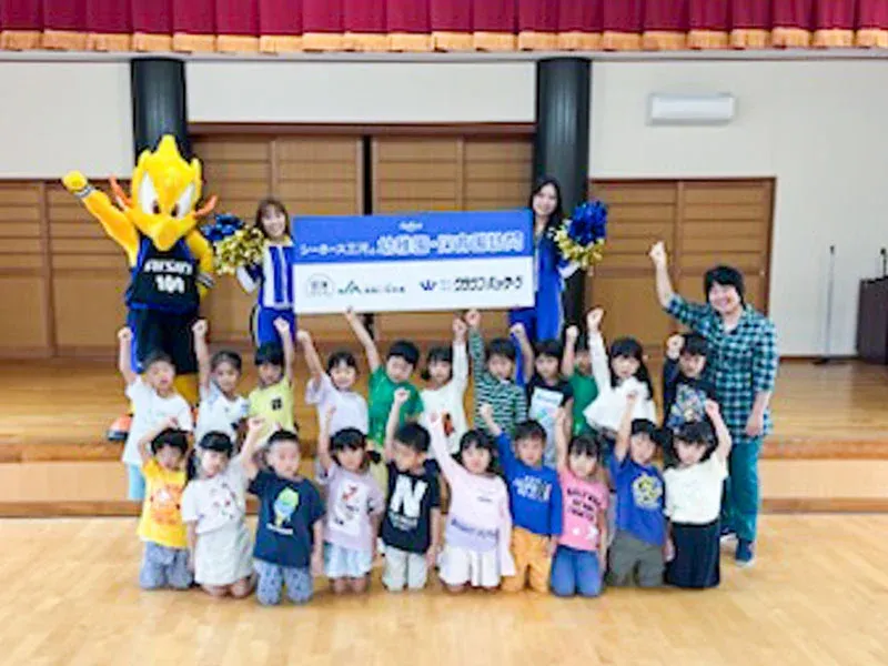 訪問の目的は、幼児たちに体を動かす楽しさを伝えることと、明るい未来を築くために必要なスポーツの重要性を教えることです。園児たちはスタッフと共にクイズやダンスを楽しみながら、笑顔を見せていました。シーホース三河は、スポーツを通じて地域に貢献し、未来を担う子供たちを育てるための活動に取り組んでいます。