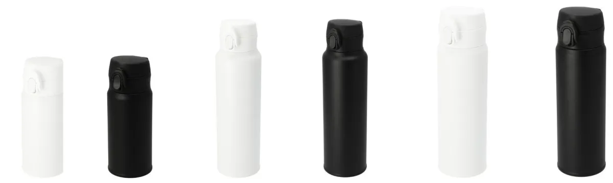 「ステンレスワンタッチボトル」は、ホワイトとブラックの2色、さらに容量は360ml、500ml、800mlの3サイズで展開しています。自分のライフスタイルに合わせた最適な容量を選ぶことができ、これからの季節にぴったりなアイテムになるでしょう。