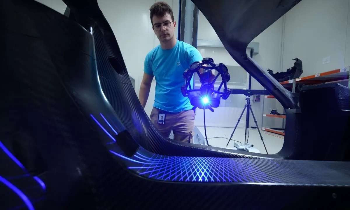 「ネヴェーラ」のモノコックは、システムを使ったスキャンプロセス取り入れ、多くのデータを収集しています。この検査では、シャーシ取り付けポイントや車両のコア部分をスキャンし、設計仕様に沿った公差の検証を行います。検査の後、すぐにデータが処理整えられ、エンジニアによって確認されます。
